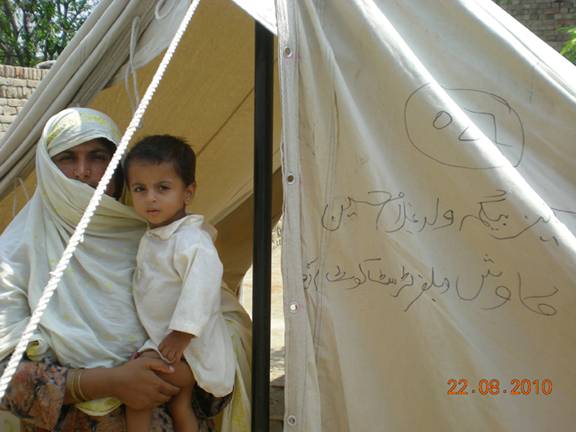 Resident of tent at Kot Addu Relief Camp, Punjab