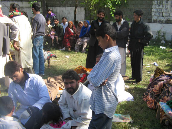 hospital at Bagh with damaged buildings in back